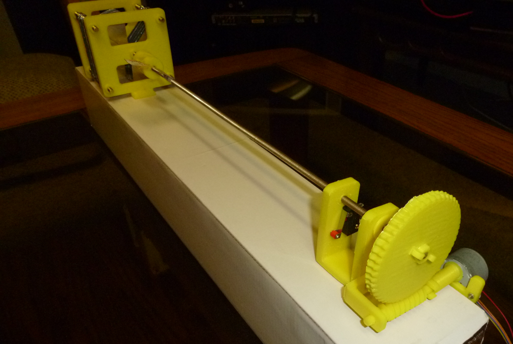 So, I have built a worm gear set. Worm gears are not very efficient, but they are great for fine tuning. This one is designed to have a 50:1 ratio.