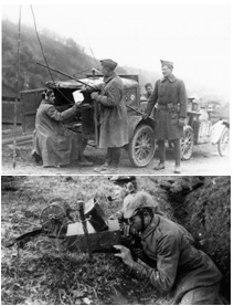 These wired communications networks worked pretty well as long as forces were static. Less so, when troops actually had to move. Contact was lost for hours or days, when formations changed or raids were conducted. Makeshift communications involved shouters, runners, pigeons and messenger dogs, semaphores, and flares.